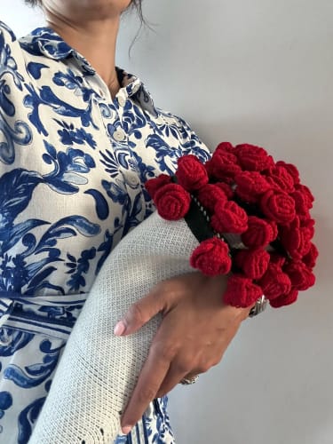 Il nostro design a doppia lavorazione unisce la maglia realizzata a mano con fiori all'uncinetto realistici per un bouquet che è sia accogliente che mozzafiato.